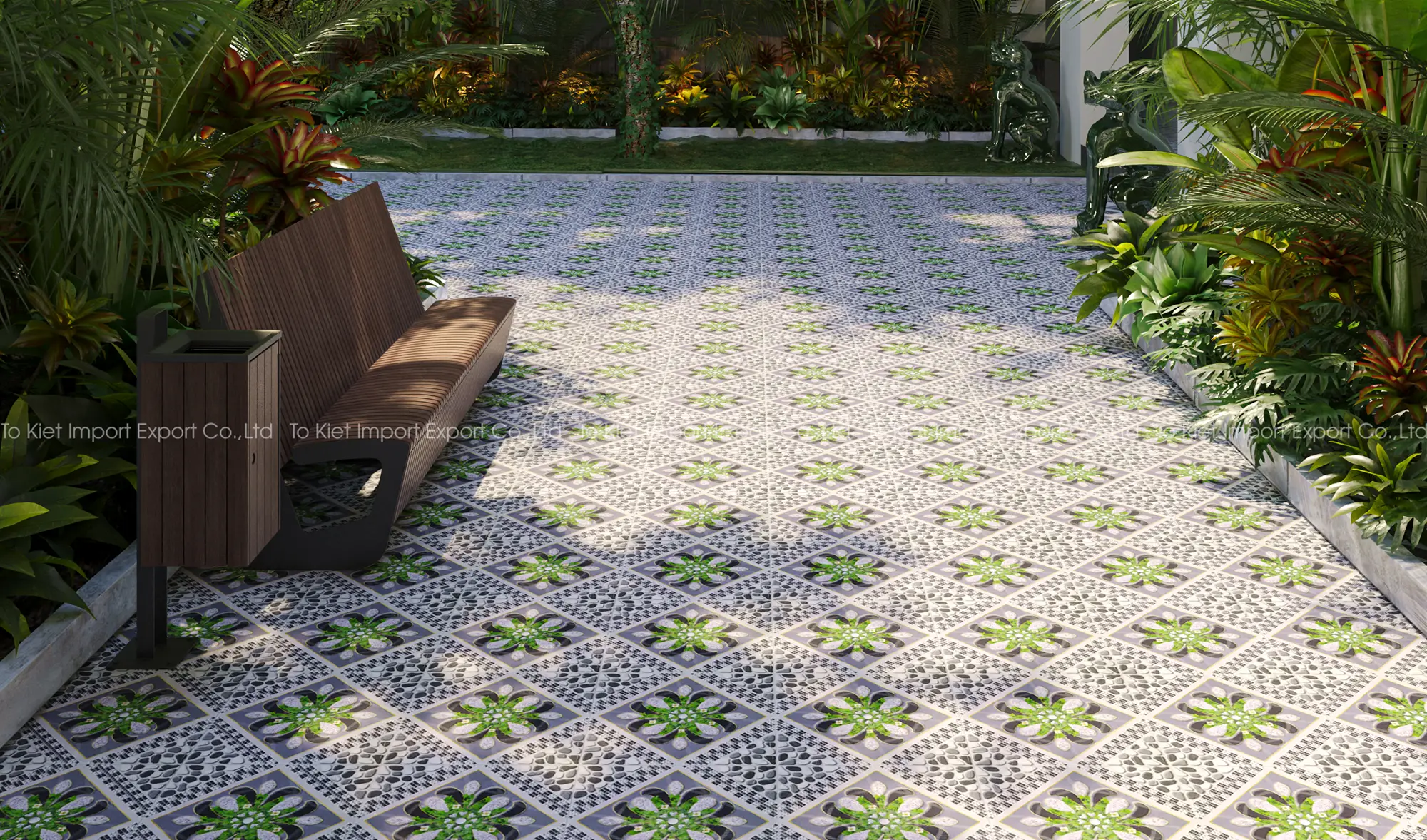 - Tăng tính thẩm mỹ: gạch với họa tiết bắt mắt, ấn tượng, màu sắc hài hòa phù hợp với mọi phong cách thiết kế, giúp không gian ngoại thất của bạn trở nên sang trọng, hiện đại và ấn tượng hơn.