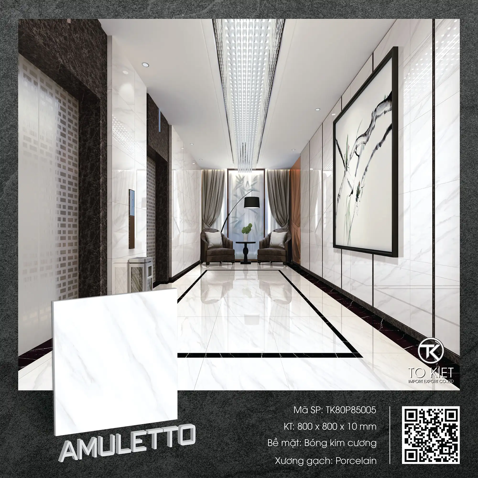 - Sở hữu kích thước ấn tượng ngay từ cái nhìn đầu tiên, dòng gạch 800 x 800 mm - AMULETTO với ưu điểm: