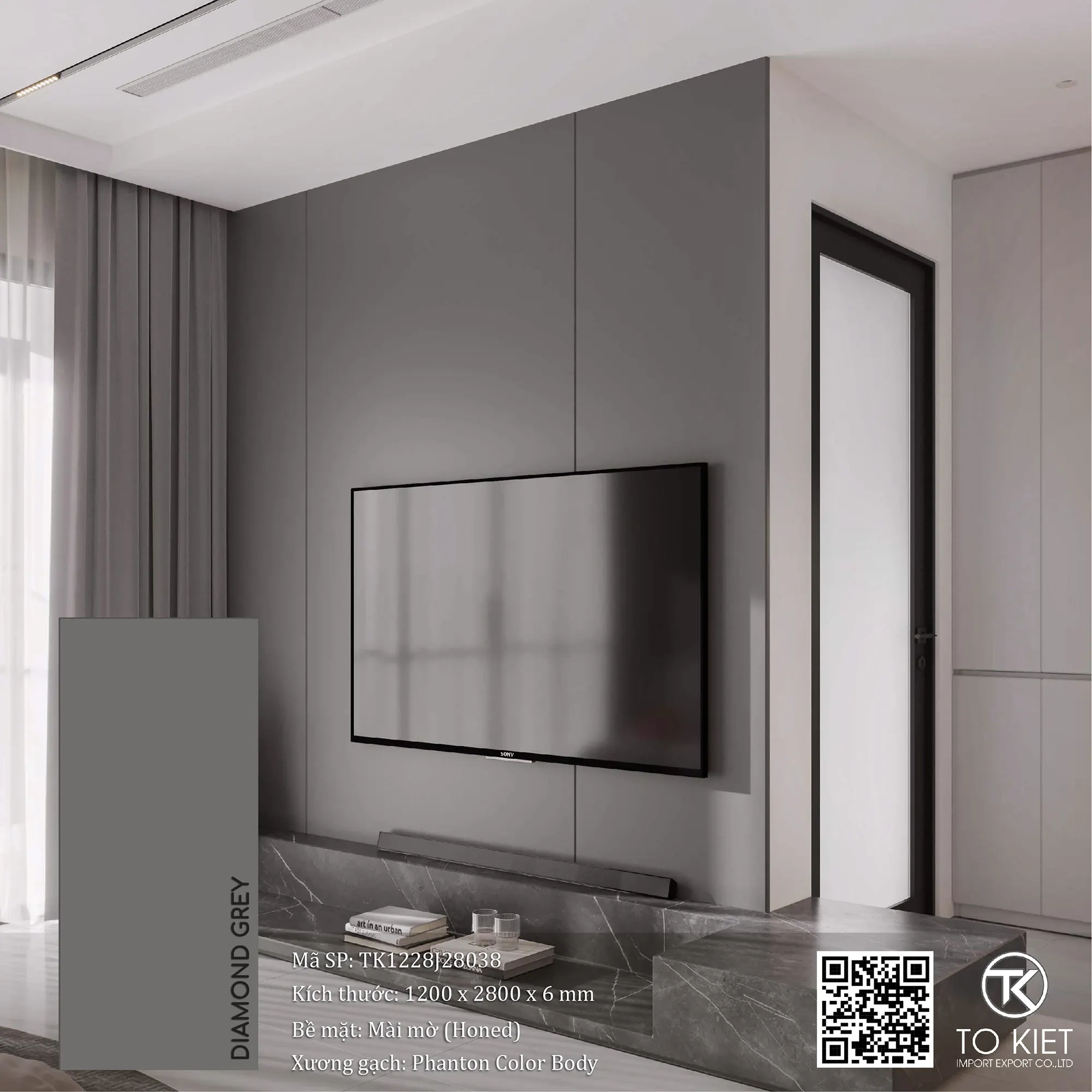 - Nếu bạn yêu thích dòng gạch đơn sắc khổ lớn 1200 x 2800mm - DIAMOND GREY thuộc bộ sưu tập COLOR & TEXTURED, hãy liên hệ HOTLINE: 1900 9999 29 hoặc ghé thăm ngay showroom Tô Kiệt để được trải nghiệm và được tư vấn miễn phí bởi đội ngũ nhân viên chuyên nghiệp của chúng tôi nhé.