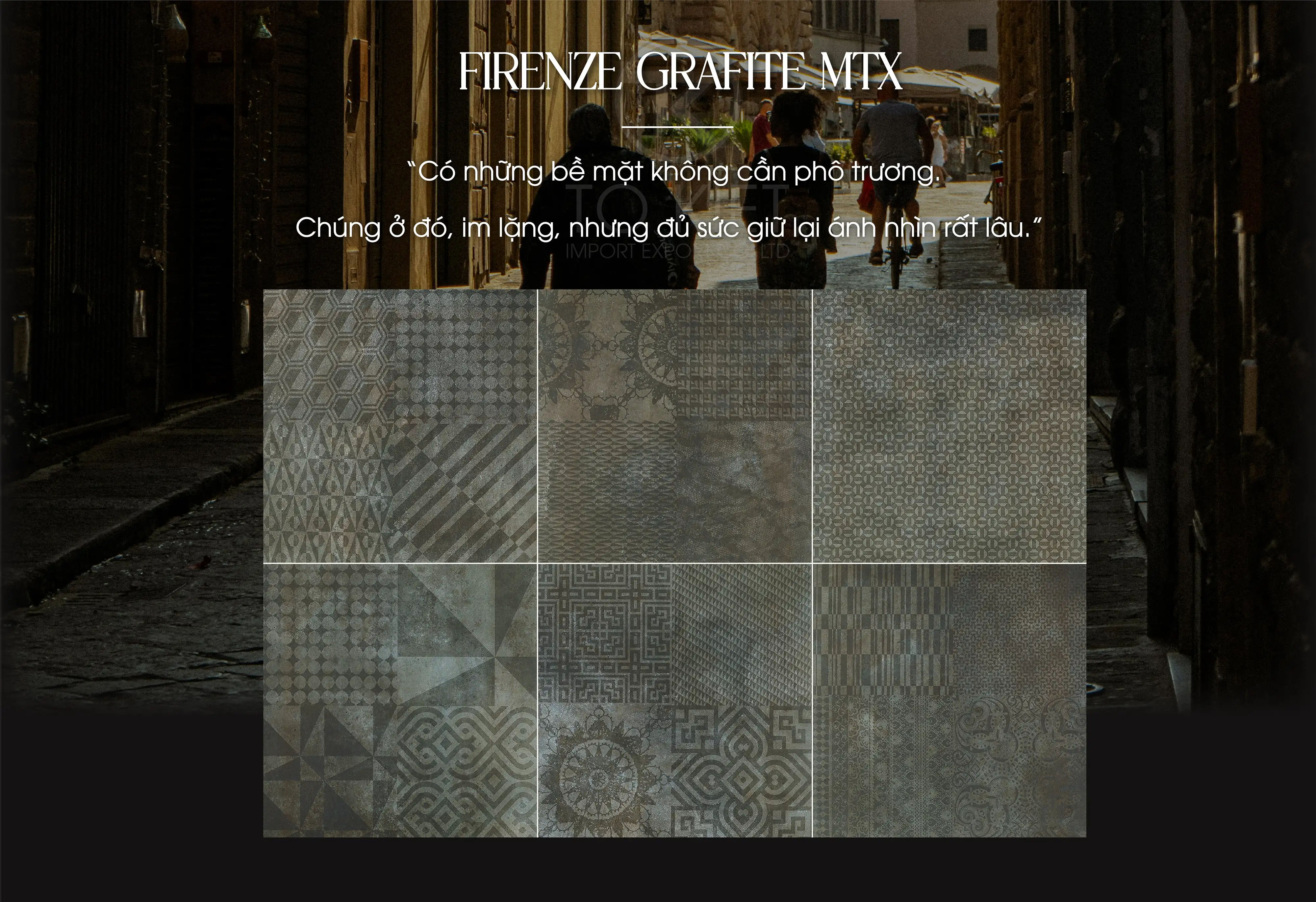 ✨ Có những bề mặt không cần kể câu chuyện theo một cách rõ ràng, chúng để người có gu tự cảm. Firenze Grafite MTX giống như một tập hợp ký ức được cắt ghép: Hình học, hoa văn cổ điển, nhịp điệu lặp, và dấu vết thời gian phủ lên tất cả. Không map nào giống map nào, nhưng đặt cạnh nhau lại rất “ăn”, rất có chủ ý.