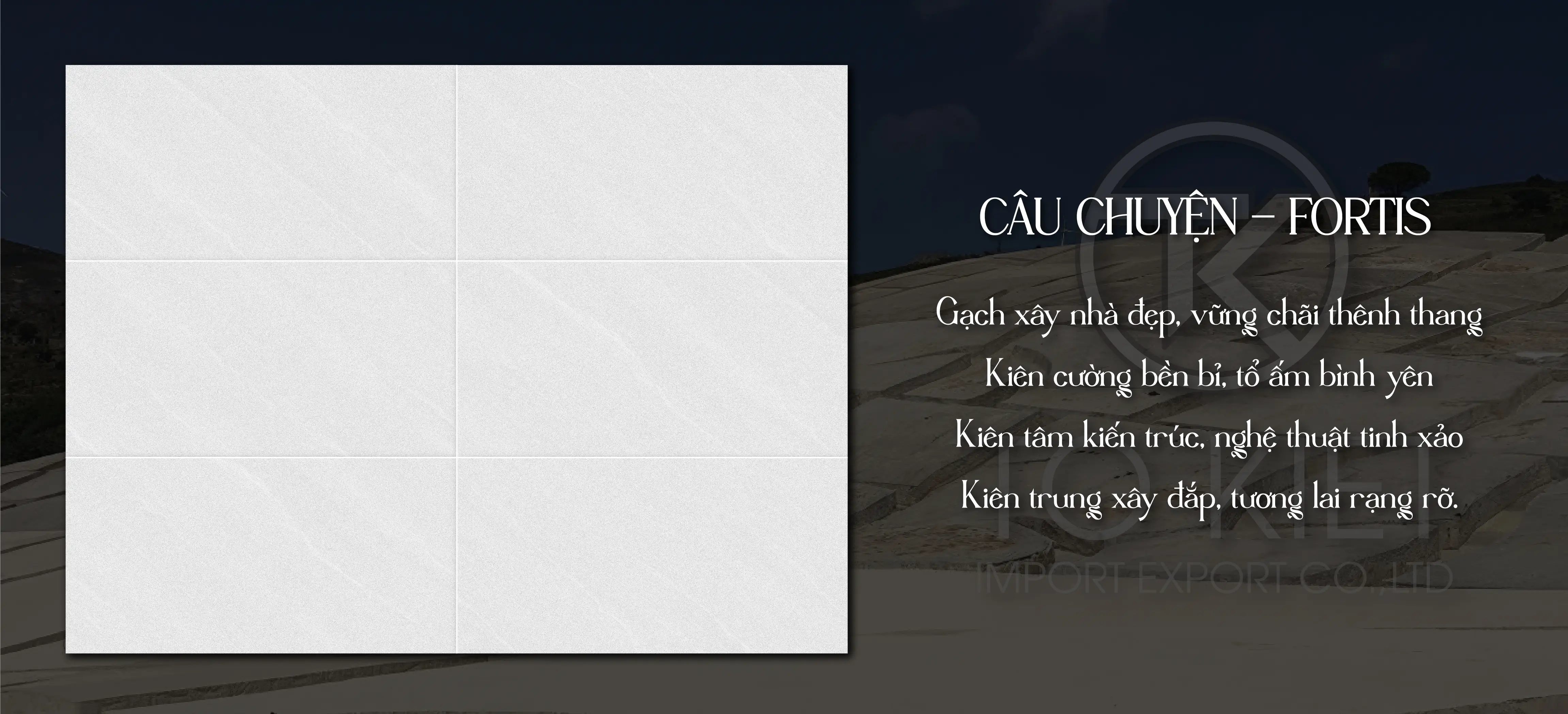 ✨ Mỗi viên gạch Fortis mang trong mình một nhịp điệu riêng, nơi những vệt vân tự nhiên khẽ buông, kể câu chuyện về thời gian, về sự vững chãi nhưng vẫn đầy tinh tế. Bề mặt mờ nhẹ nhàng không chỉ tạo cảm giác thanh thoát, mà còn khơi gợi sự ấm áp, gần gũi, khiến mỗi không gian trở nên tĩnh lặng nhưng đầy cảm xúc.