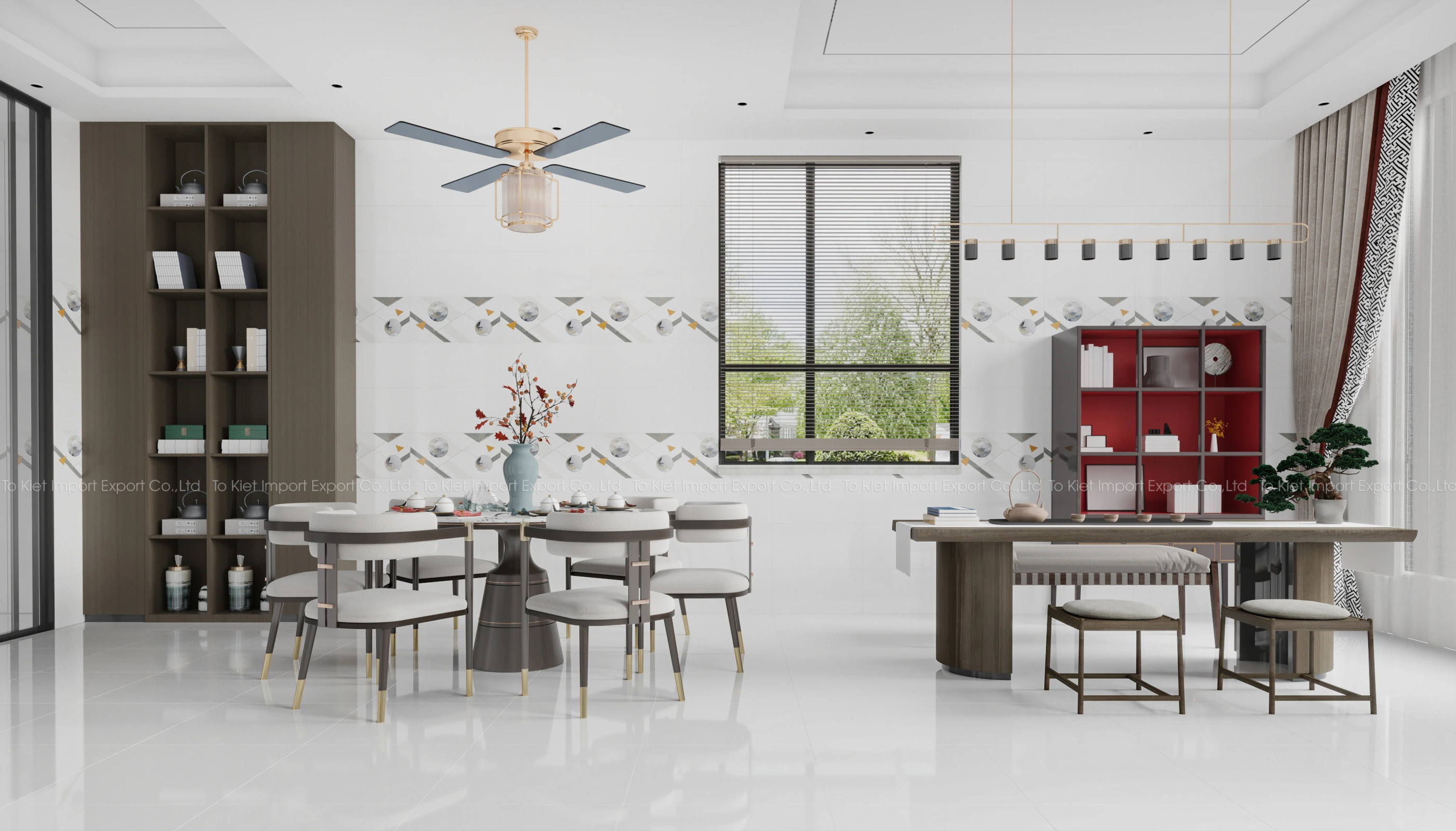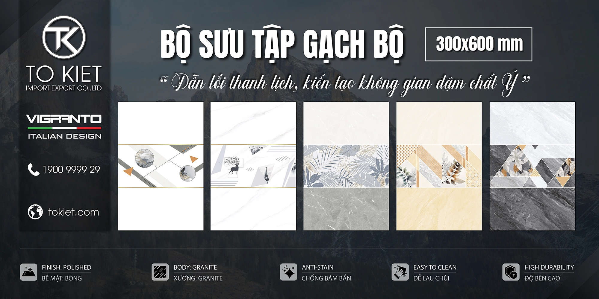 - Dễ vệ sinh – Bền màu - Chống bám bẩn theo tiêu chuẩn gạch ốp lát chất lượng cao.