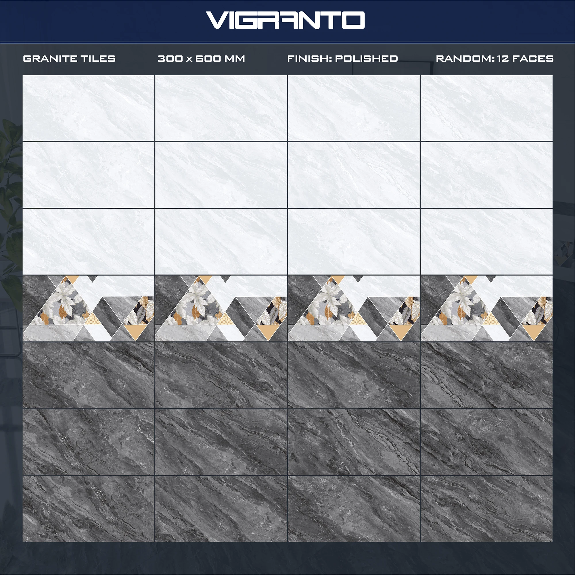 ✨ Giữa gam màu xám lạnh, hoa văn lá màu vàng kim và trắng như thắp lên một điểm sáng, giống như cách ánh nắng cuối ngày chạm vào vách đá, bật lên vẻ đẹp mà chỉ những ai tinh tế mới nhận ra.
