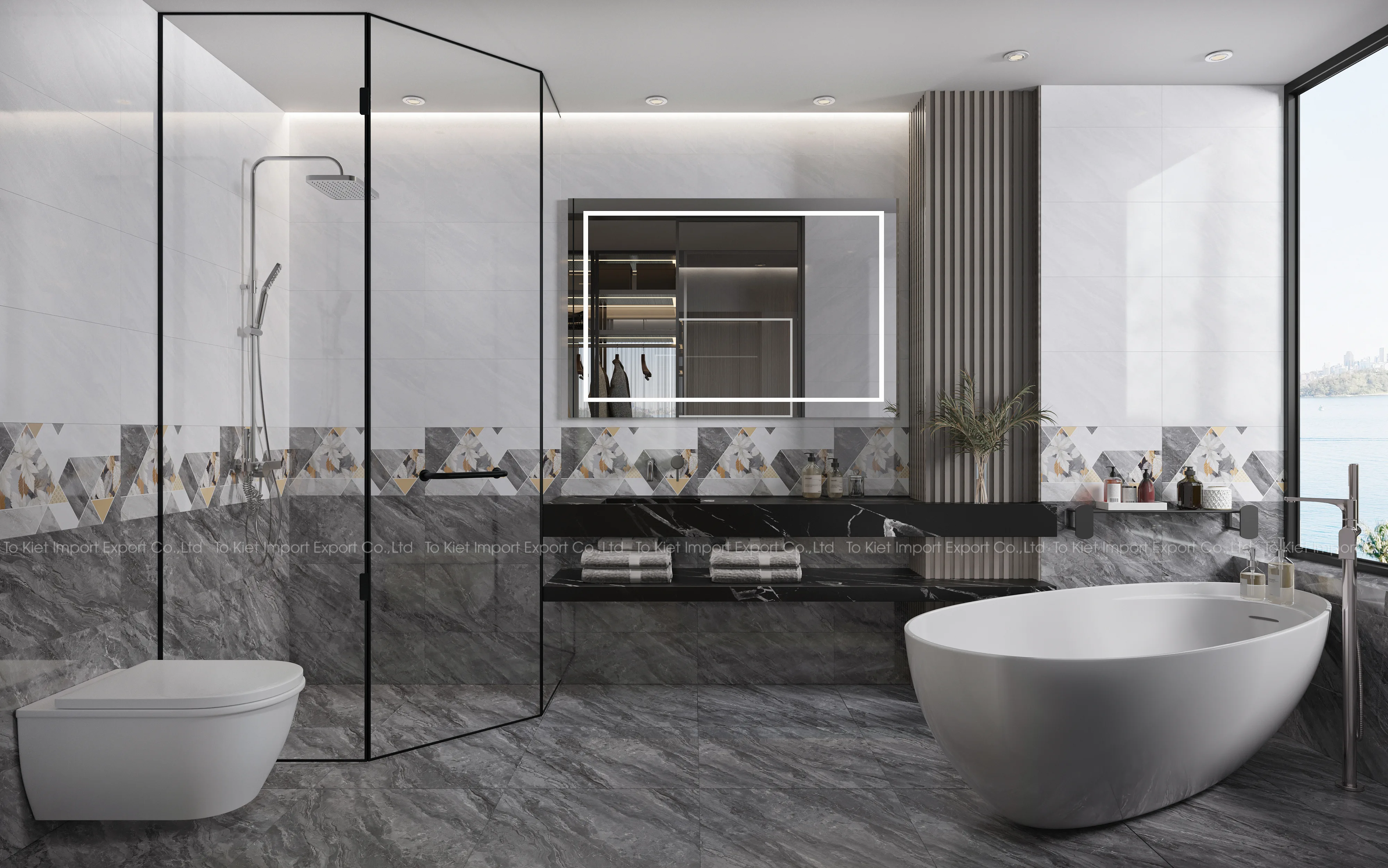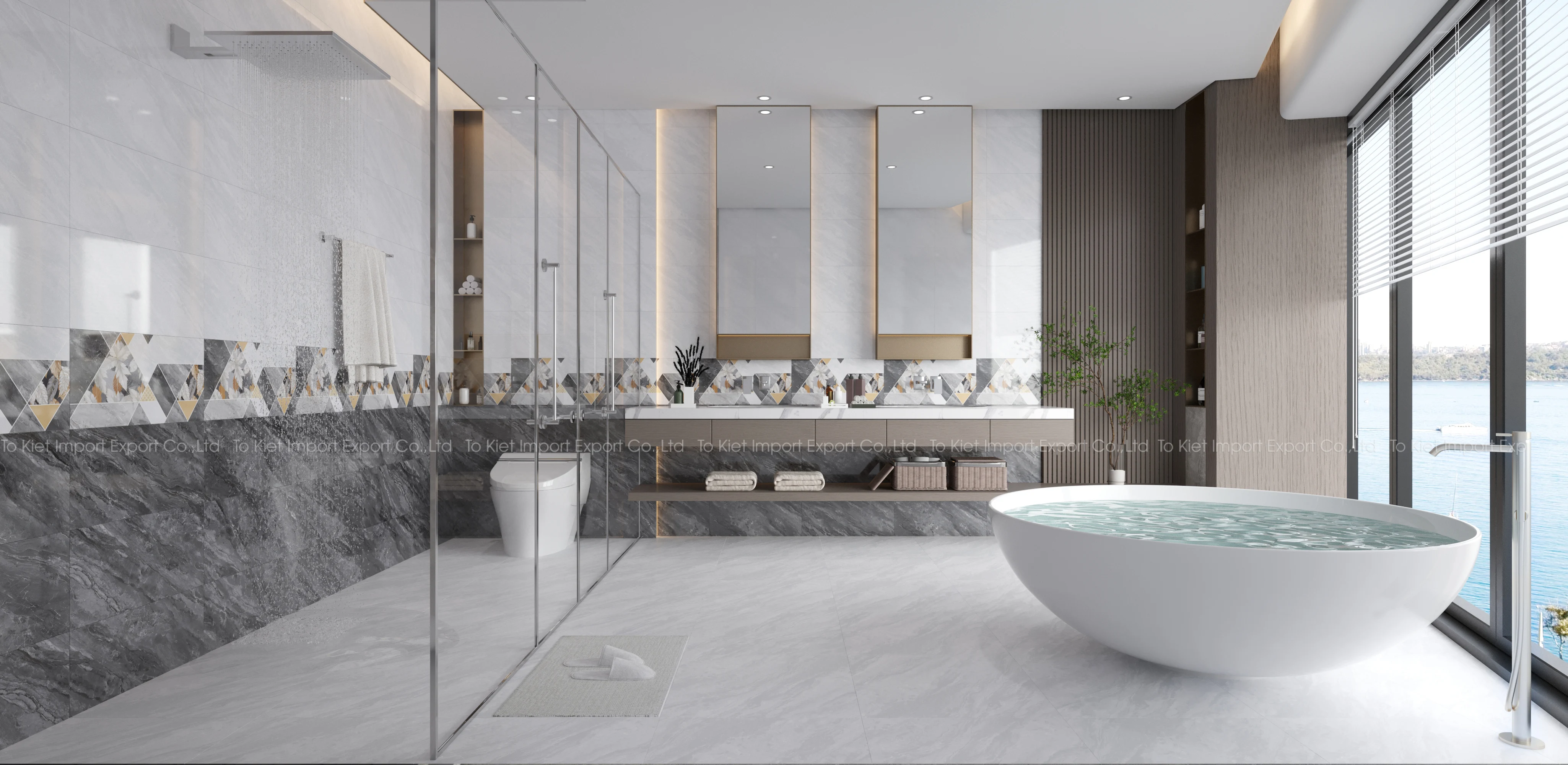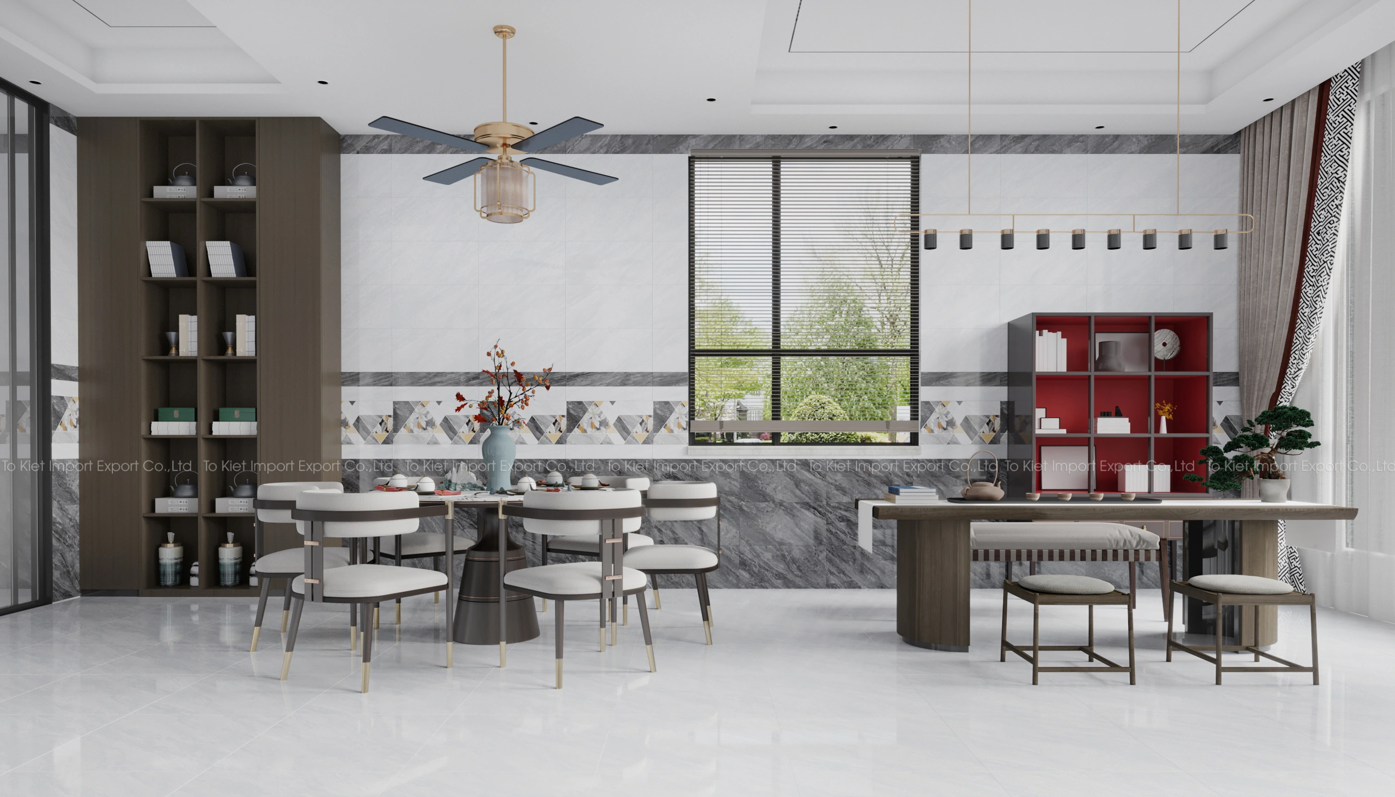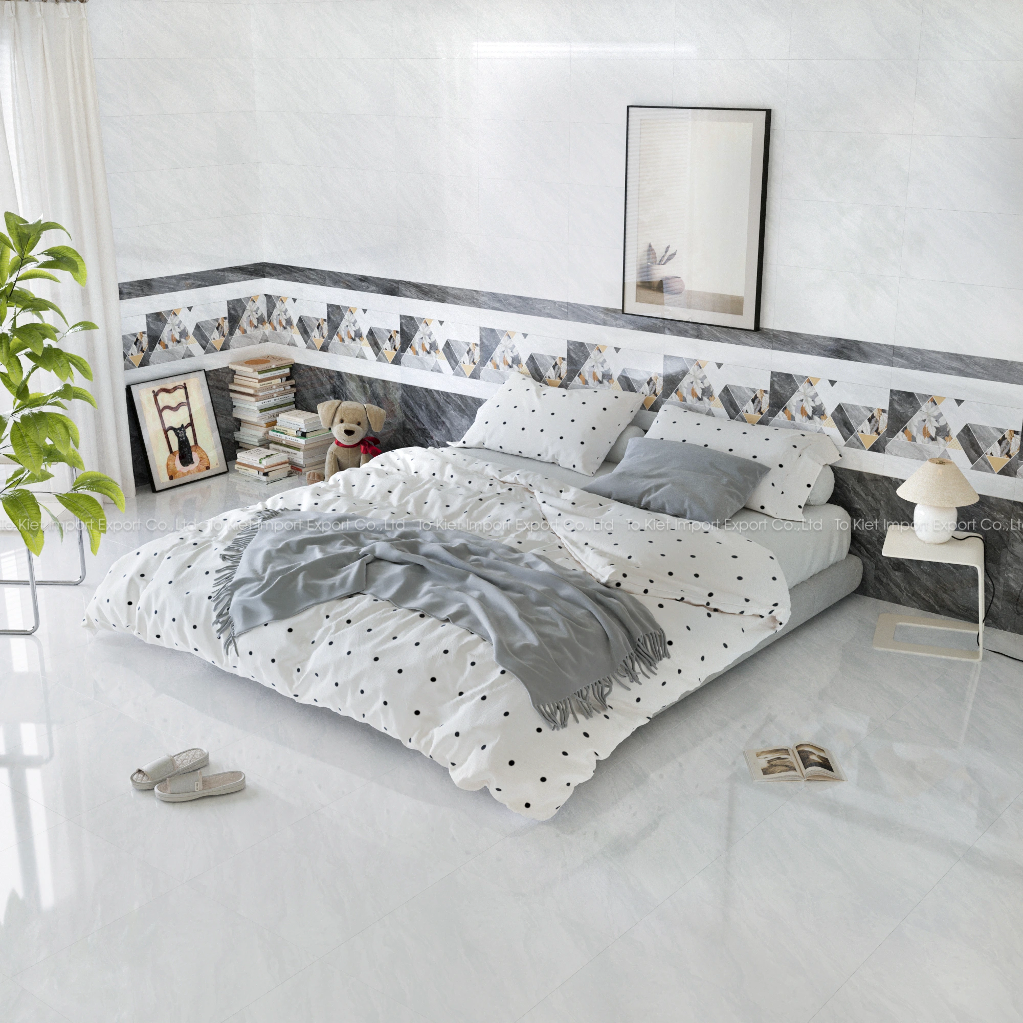 - Bố cục đồng bộ: Gạch nền – Gạch tường – Gạch điểm được thiết kế theo cùng phong cách.