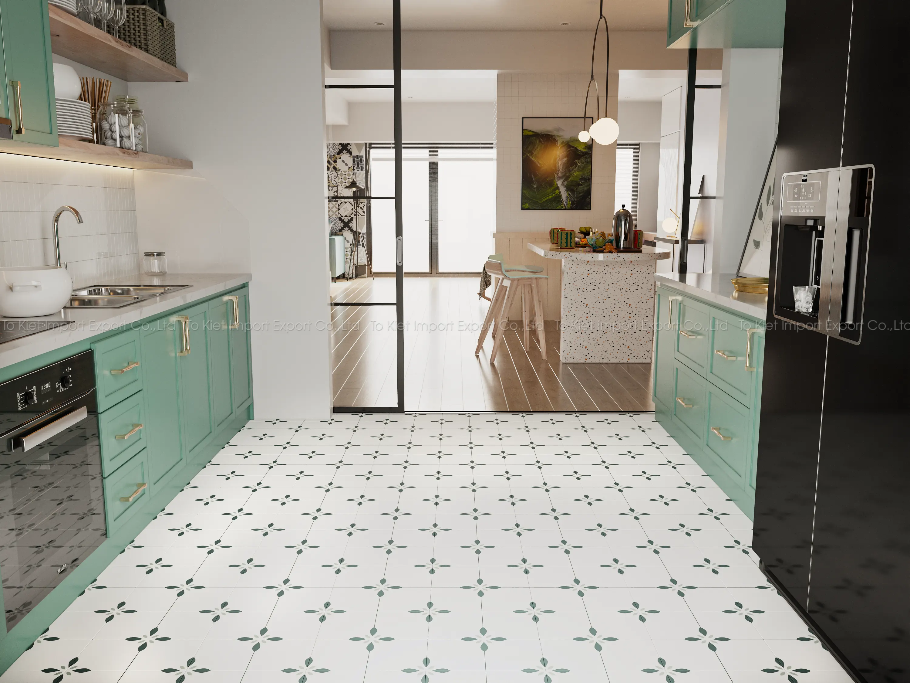 Gạch bông đã từng là linh hồn của những ngôi nhà cổ, là nền gạch mát lạnh nơi ta chơi đùa thuở bé, là góc bếp nơi bà nấu bữa cơm chiều. Tại đây, vẻ đẹp ấy đã trở lại, vẫn là những họa tiết tinh xảo, vẫn là sự duyên dáng hoài cổ, nhưng bên trong là sức mạnh của vật liệu hiện đại: Độ bền vượt trội, chống thấm gần như tuyệt đối, giữ nguyên sắc màu qua năm tháng. Bạn không còn lo ố vàng hay phai màu – chỉ việc tận hưởng vẻ đẹp bền lâu như chính ký ức vẫn vẹn nguyên trong tim.