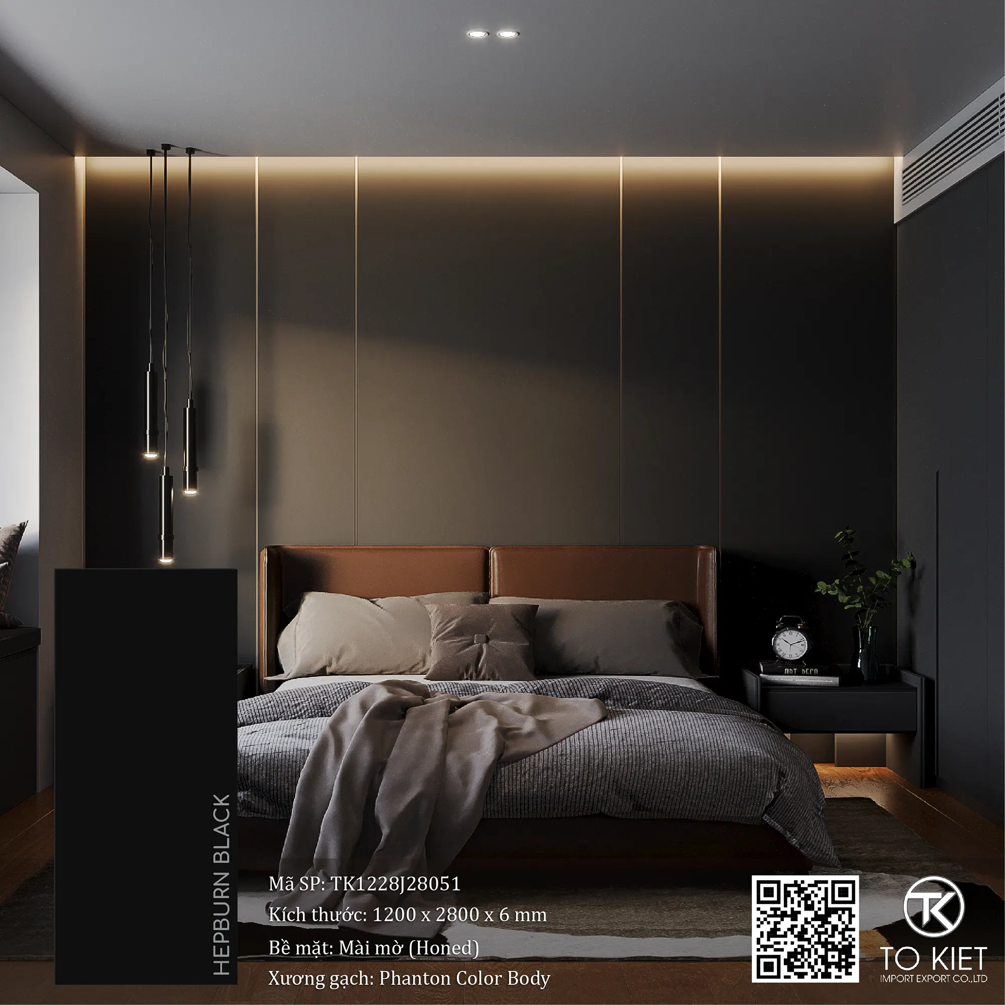 - Sở hữu kích thước ấn tượng ngay từ cái nhìn đầu tiên, dòng gạch đơn sắc 1200 x 2800 mm - HEPBURN BLACK của chúng tôi với ưu điểm: