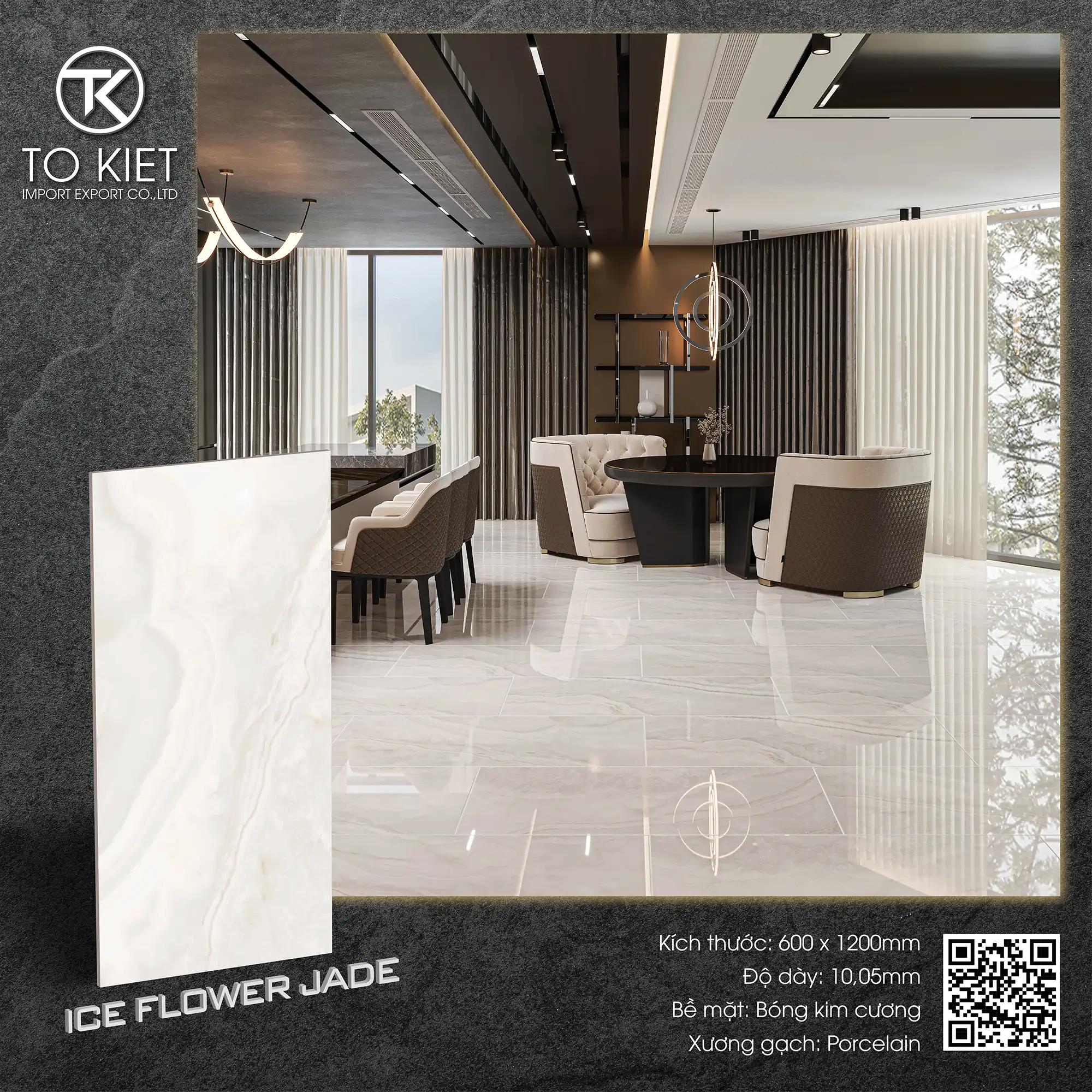 - Sở hữu kích thước ấn tượng ngay từ cái nhìn đầu tiên, dòng gạch 600 x 1200 mm - ICE FLOWER JADE với ưu điểm:
