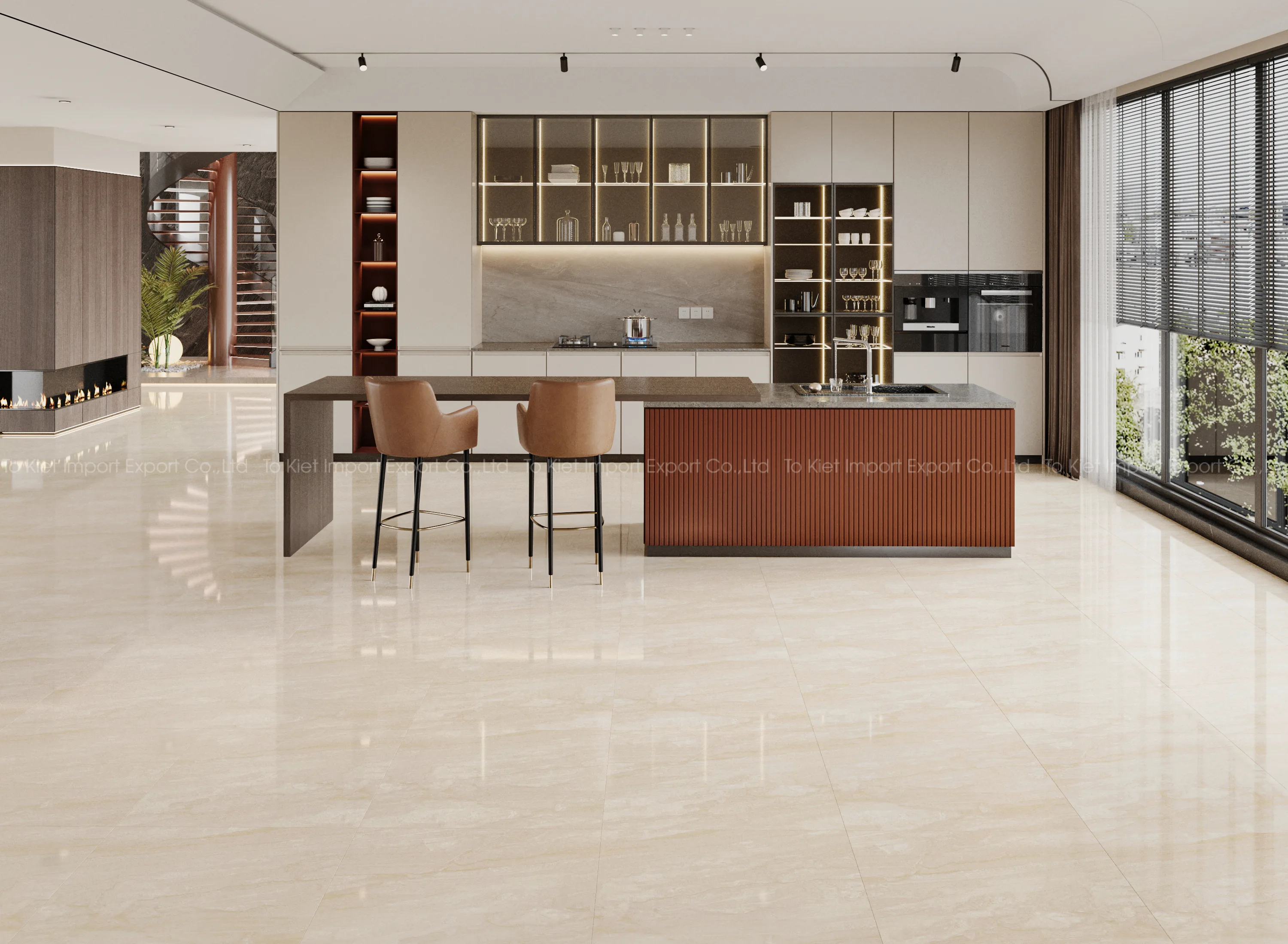 Lựa chọn nội thất: Nội thất đi kèm nên có thiết kế đơn giản, hiện đại để tôn lên vẻ đẹp của gạch.